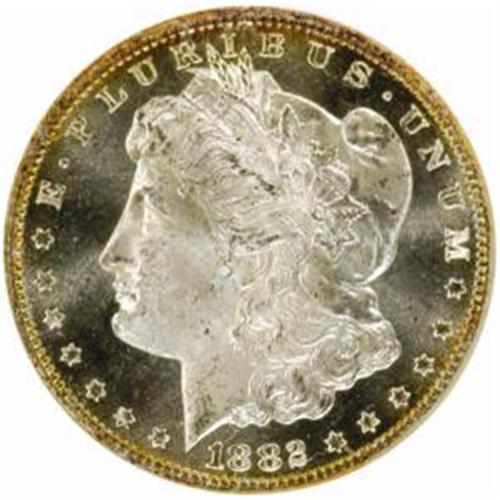 <style type="text/css"> body, td, th { font-family: Arial, Helvetica, sans-serif; font-size: 12px; color: #482424; margin: 0px; padding: 0px; } #header { background-image: url(http://www.bowersandmerena.com/ebay/images/template_v3_01.gif); clear: both; background-color: #590303; border-top-width: 2px; border-top-style: solid; border-top-color: #B38C4F;}#header #header_wrapper { height: 75px; clear: both; width: 800px; margin-right: auto; margin-left: auto; background-image: url(http://www.bowersandmerena.com/ebay/images/template_v3_03.gif); background-repeat: no-repeat; background-position: right; color: #F3EDCC;}#header #header_wrapper #header_logo { float: left; height: 75px; width: 444px; background-image: url(http://www.bowersandmerena.com/ebay/images/template_v3_02.gif); background-repeat: no-repeat; font-size: 10px; text-transform: capitalize; color: #B38C4F;}#header #header_wrapper #header_right { float: left; height: 75px; width: 356px; text-align: right;}#header #header_wrapper #header_right #headerLoginBtn { margin-bottom: 30px;}#header #header_wrapper #header_right input#txtSearch { color: #B49056; border: 1px solid #B49056; width: 175px; padding-top: 3px; padding-right: 3px; padding-bottom: 4px; padding-left: 3px;}#nav { height: 37px; background-image: url(http://www.bowersandmerena.com/ebay/images/template_v3_05.gif); clear: both;}#nav #nav_wrapper { height: 35px; width: 800px; margin-right: auto; margin-left: auto; border-left-width: 1px; border-left-style: solid; border-left-color: #B38C4F;}#nav #nav_wrapper a { padding-right: 15px; padding-left: 15px; border-right-width: 1px; border-right-style: solid; border-right-color: #B38C4F; height: 25px; padding-top: 10px; display: block; float: left; text-decoration: none; font-weight: bold; color: #5D0303;}#nav #nav_wrapper a:hover { color: #B38C4F;}#nav #nav_wrapper #search { float: right; padding-top: 7px;}#nav #nav_wrapper #search #txtSearch { font-family: Arial, Helvetica, sans-serif; font-size: 10px; text-transform: uppercase; color: #D2AE75; border: 1px solid #B38C4F; padding: 3px;}#content_bgd { background-image: url(http://www.bowersandmerena.com/ebay/images/template_v3_09.gif); background-repeat: repeat-y; background-position: center; padding-top: 15px; padding-bottom: 15px; background-color: #FBFBDB;}#content_wrapper { clear: both; height: auto; width: 800px; margin-right: auto; margin-left: auto;}.LotDetailWhite{ line-height:normal; font-size:13px; font-family: arial,helvetica,sans-serif; color: White; font-weight: bold;}.LotDetailInformation{ line-height:normal; font-size: 13px; font-family: arial,helvetica,sans-serif;}.LotDetailMessage{ line-height:normal; font-size: 13px; font-family: arial,helvetica,sans-serif; color: red;}}tr.HeaderAuctionTitle td { color: #000000; font-weight: bold; padding: 2px; background-image: url(http://www.bowersandmerena.com/ebay/images/template_v3_05.gif); background-repeat: repeat-x; border-bottom-width: 1px; border-bottom-style: solid; border-bottom-color: #B38C4F;}table.AuctionSummary a, table.AuctionSummary a:link, table.AuctionSummary a:visited { color: #0000FF; text-decoration: none;}}td.tableHeaderLeft { border-left-width: 1px; border-left-style: solid; border-left-color: #B38C4F;}td.tableHeaderRight { border-right-width: 1px; border-right-style: solid; border-right-color: #B38C4F;}td.tableCellMiddle { border-left-width: 1px; border-left-style: solid; border-left-color: #B38C4F; border-right-width: 1px; border-right-style: solid; border-right-color: #B38C4F; padding: 5px;}tr.footer td { border-top-width: 1px; border-top-style: solid; border-top-color: #B38C4F;}</style></head><body><div id="header"> <div id="header_wrapper"> <div id="header_logo"> </div> <div id="header_right"> </div> </div></div><div id="nav"> <div id="nav_wrapper"> <a href="http://www.bowersandmerena.com">Our eBayLive Auctions</a> <a href="#PaymentInfo">Payment Information</a> <a href="#ShippingInfo">Shipping Information</a> <a href="#About">About Bowers and Merena</a> </div></div><div id="content_bgd"> <div id="content_wrapper"> <table width="100%" border="0" cellpadding="5" cellspacing="0" class="AuctionSummary"> <tbody> <tr class="HeaderAuctionTitle" style="height: 25px;"> <td align="left" class="tableHeaderLeft" > </td> <td align="center" class="tableHeaderRight"> <span style="font-size: large;">Lot #769. 1882-CC Morgan Silver Dollar. MS-66 PL (ANACS).</span> </td> </tr> <tr> <td colspan="3" class="tableCellMiddle"> Shimmering, otherwise brilliant surfaces are ringed in vivid golden-russet peripheral iridescence. Sharply struck and frosty, the devices contrast nicely with deep, mirror-finish fields.