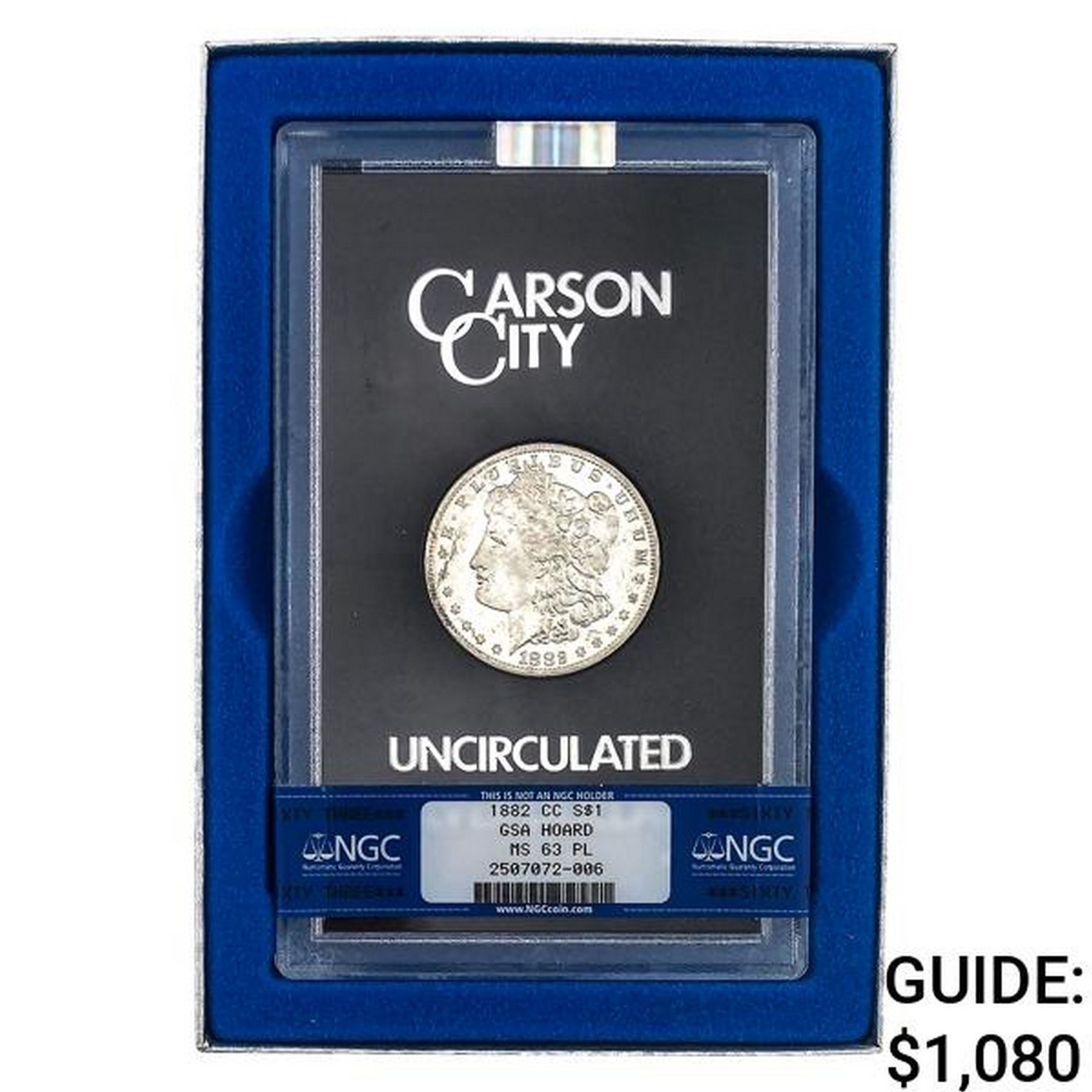 1882-CC Morgan Silver Dollar NGC MS63 PL GSA Hoard