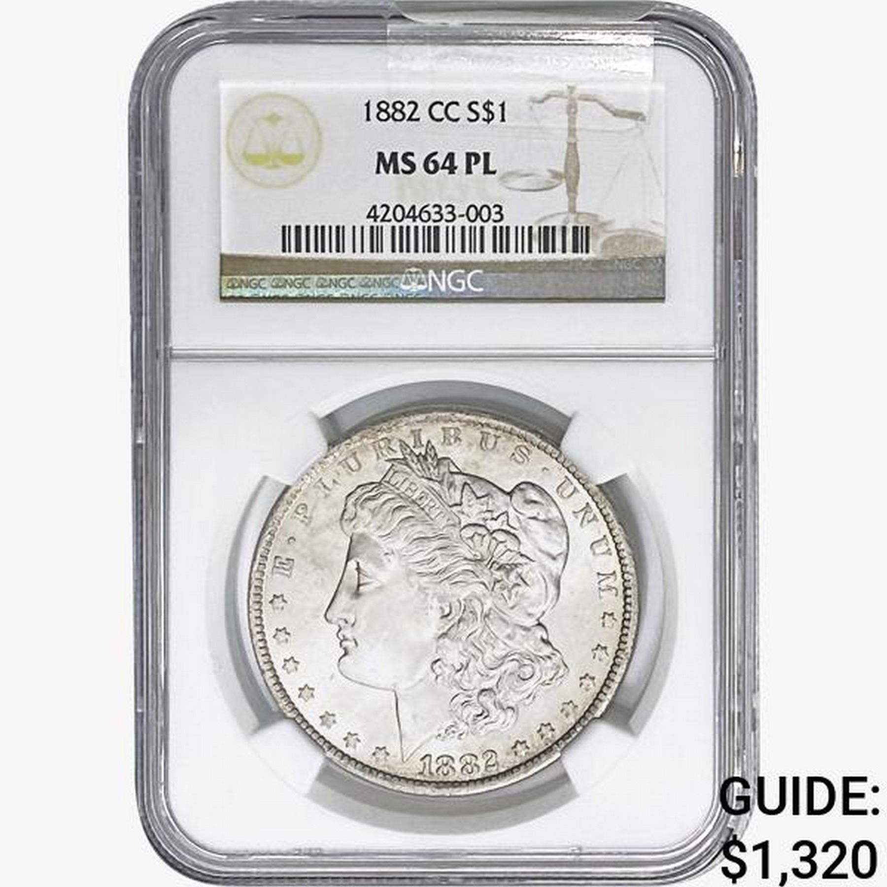 1882-CC Morgan Silver Dollar NGC MS64 PL