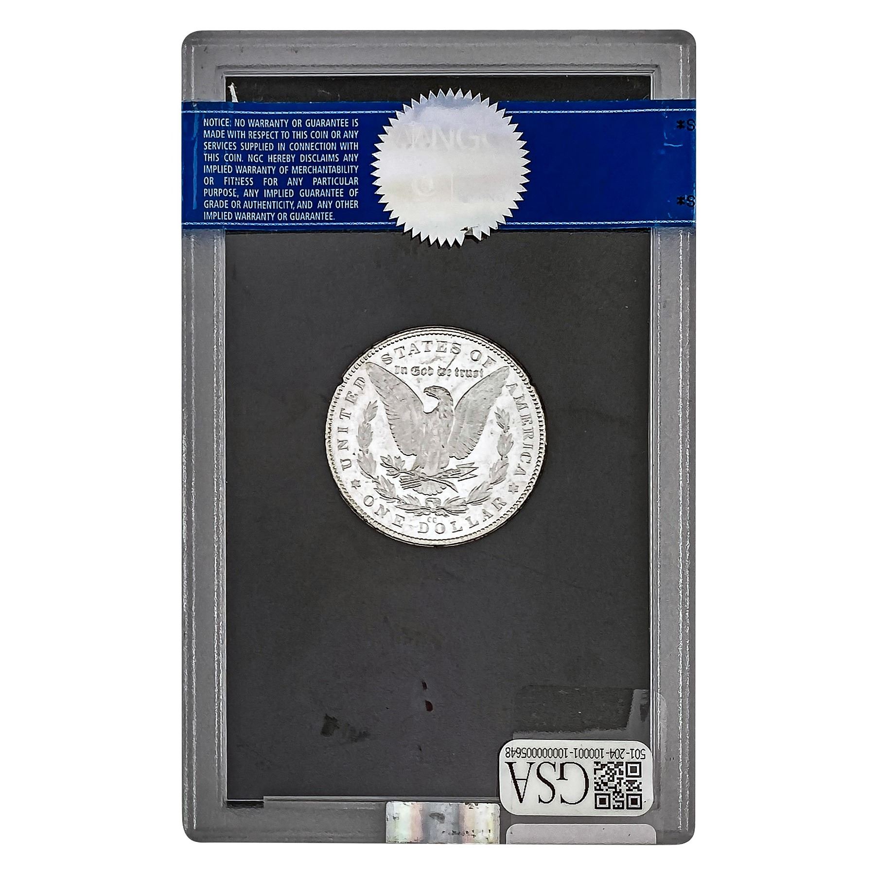 COINS AND CURRENCY LISTED IN GSA’S CATALOG AS GRADED AND ENCAPSULATED BY PCGS, NGC, ANACS, ICG, PCGS CURRENCY, PMG, PCGS BANKNOTE GRADING, CMC OR ANY OTHER THIRD-PARTY GRADING SERVICE ARE LIKEWISE SOLD “AS-IS” EXCEPT AS EXPRESSLY SET FORTH HEREIN. ALL THIRD-PARTY GRADING SERVICE GUARANTEES, INCLUDING AUTHENTICITY, ARE THE SOLE RESPONSIBILITY OF THE THIRD-PARTY GRADING SERVICE AND NOT WARRANTIES OR GUARANTEES OF GSA. BIDDERS SHOULD CONTACT THESE THIRD-PARTY GRADING SERVICES DIRECTLY WITH RESPECT TO ANY CLAIMS OR QUESTIONS THEY MAY HAVE CONCERNING THEIR GUARANTEES AND WARRANTIES. BIDDERS ACKNOWLEDGE AND AGREE THAT AUCTIONEER IS NOT BOUND BY OR LIABLE FOR ANY OPINION OR CERTIFICATION BY ANY THIRD-PARTY GRADING SERVICE. REMOVAL OF A PRODUCT FROM ITS PROTECTIVE CASING OR HOLDER OR ALTERATION OF ANY COIN HOLDER WAIVES ALL RIGHTS CONCERNING THE PRODUCT CONTAINED THEREIN.
