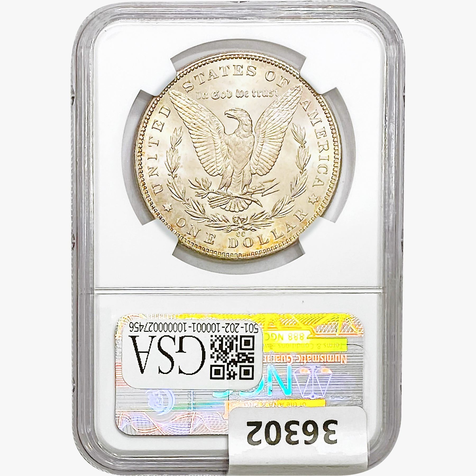 COINS AND CURRENCY LISTED IN GSA’S CATALOG AS GRADED AND ENCAPSULATED BY PCGS, NGC, ANACS, ICG, PCGS CURRENCY, PMG, PCGS BANKNOTE GRADING, CMC OR ANY OTHER THIRD-PARTY GRADING SERVICE ARE LIKEWISE SOLD “AS-IS” EXCEPT AS EXPRESSLY SET FORTH HEREIN. ALL THIRD-PARTY GRADING SERVICE GUARANTEES, INCLUDING AUTHENTICITY, ARE THE SOLE RESPONSIBILITY OF THE THIRD-PARTY GRADING SERVICE AND NOT WARRANTIES OR GUARANTEES OF GSA. BIDDERS SHOULD CONTACT THESE THIRD-PARTY GRADING SERVICES DIRECTLY WITH RESPECT TO ANY CLAIMS OR QUESTIONS THEY MAY HAVE CONCERNING THEIR GUARANTEES AND WARRANTIES. BIDDERS ACKNOWLEDGE AND AGREE THAT AUCTIONEER IS NOT BOUND BY OR LIABLE FOR ANY OPINION OR CERTIFICATION BY ANY THIRD-PARTY GRADING SERVICE. REMOVAL OF A PRODUCT FROM ITS PROTECTIVE CASING OR HOLDER OR ALTERATION OF ANY COIN HOLDER WAIVES ALL RIGHTS CONCERNING THE PRODUCT CONTAINED THEREIN.