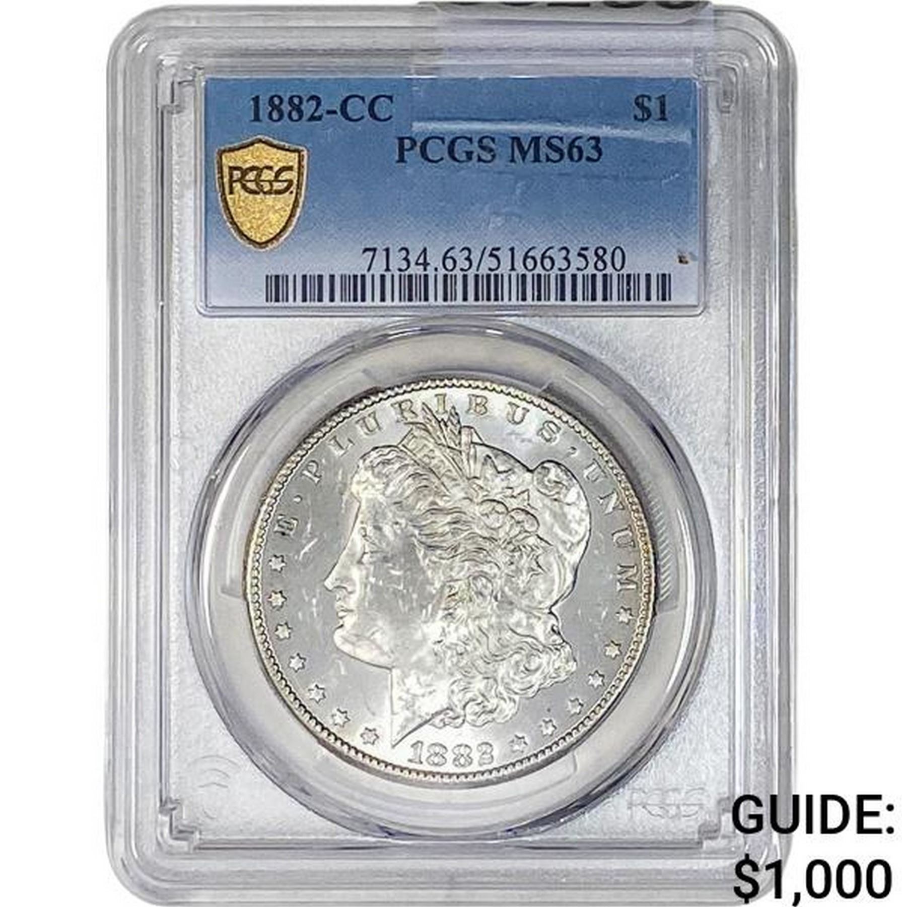 1882-CC Morgan Silver Dollar PCGS MS63