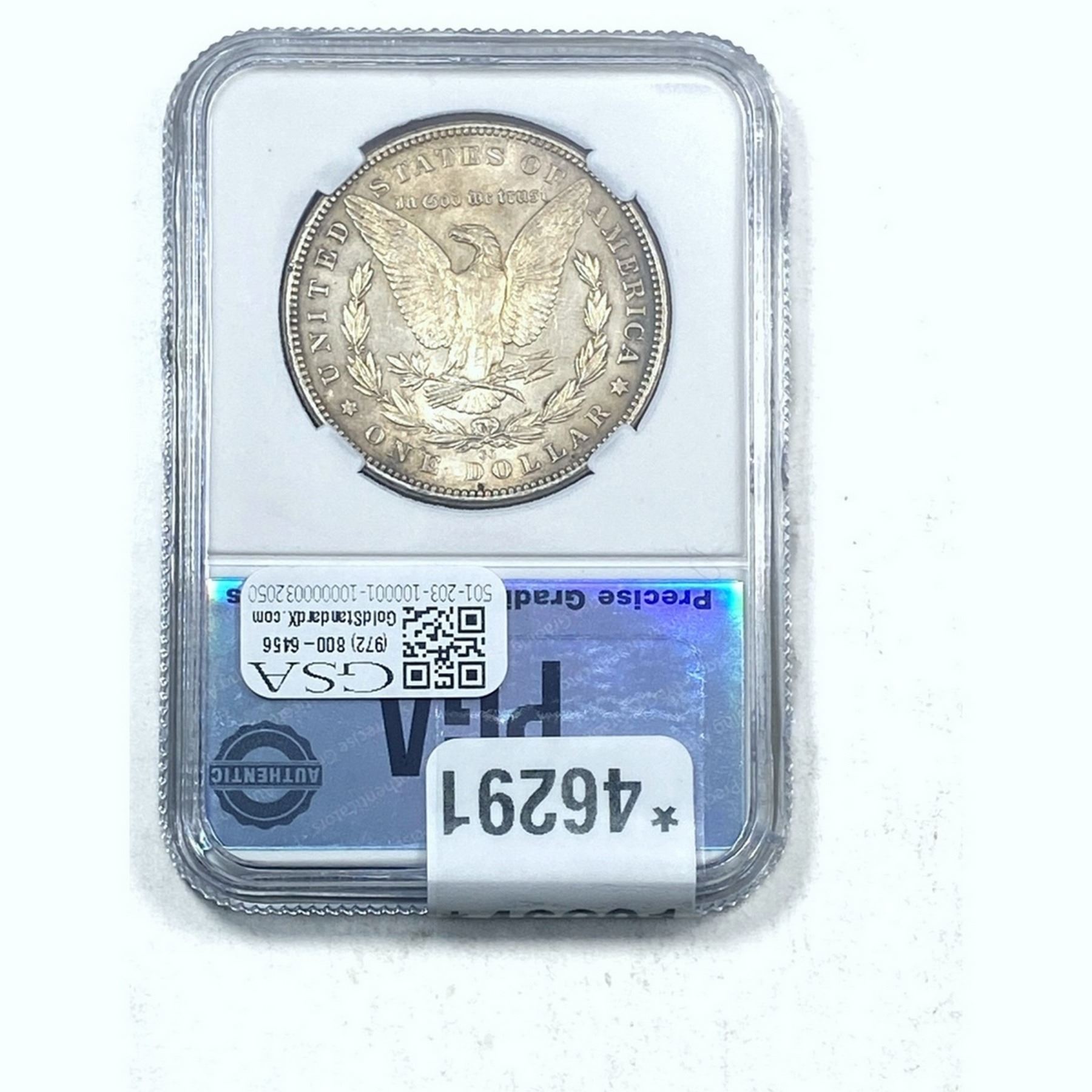 e. Coins sold referencing a third-party grading service are sold “AS IS” without any express or implied warranty, except for a guarantee by GSA that they are genuine. Removal or alteration of the holder, voids all of Bidder’s claims concerning that Product. Certain warranties may be available from the grading services and Bidders are referred to them for further details: Numismatic Guaranty Corporation (NGC), PO Box 4776, Sarasota, FL 34230, www.ngccoin.com/services/writtenguarantee.asp; Professional Coin Grading Services (PCGS), PO Box 9458, Newport Beach, CA 92658, www.pcgs.com/guarantee.html; ANACS, 6555 S. Kenton St., Ste. 303, Englewood, CO 80111; and Independent Coin Grading Co. (ICG), 7901 East Bellview, Ave., Suite 50, Englewood, CO 80111.