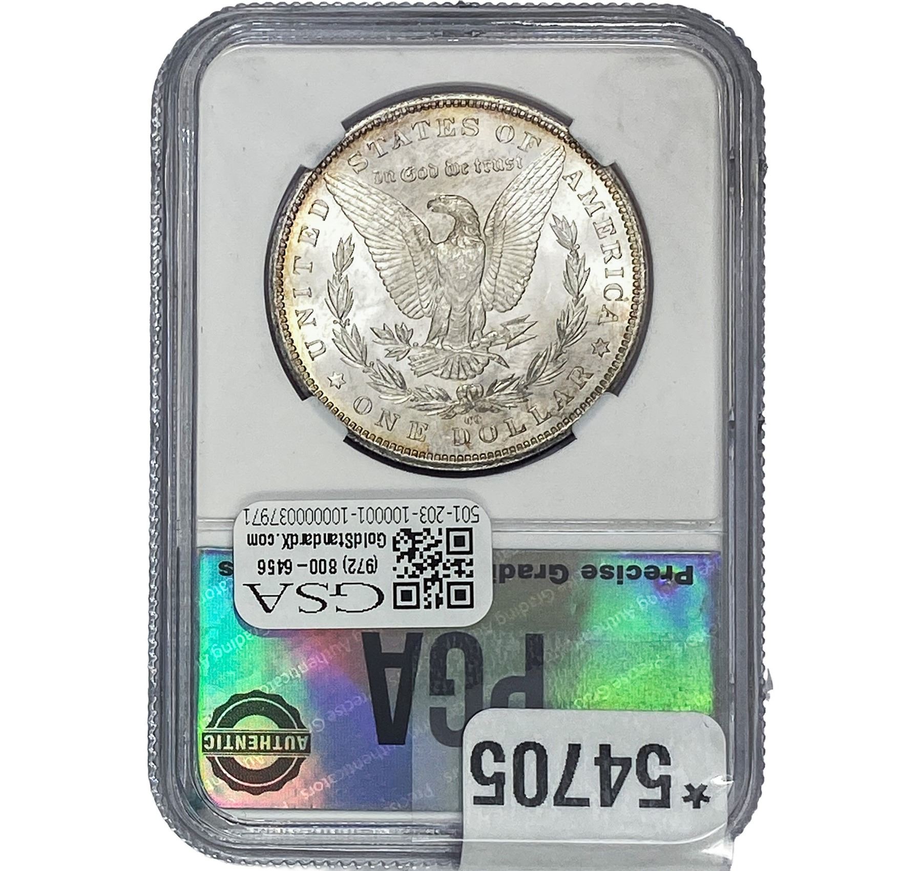 l. All non-certified coins and currency are guaranteed genuine, but are not guaranteed as to grade, since grading is a matter of opinion, an art and not a science, and therefore the description rendered by GSA or any third-party grading service may not agree with the opinion of others (including trained experts), and the same expert may not grade the same item with the same grade at two different times. GSA may, but is not obligated to, express an opinion as to non-certified numismatic items, in GSA’s opinion, or by its employees’ experience and the current interpretation of the American Numismatic Association’s standards as of the date the catalog was prepared. There is no guarantee or warranty expressed or implied that the grading opinions utilized by GSA, if any, will meet the standards of any grading service at any time in the future.