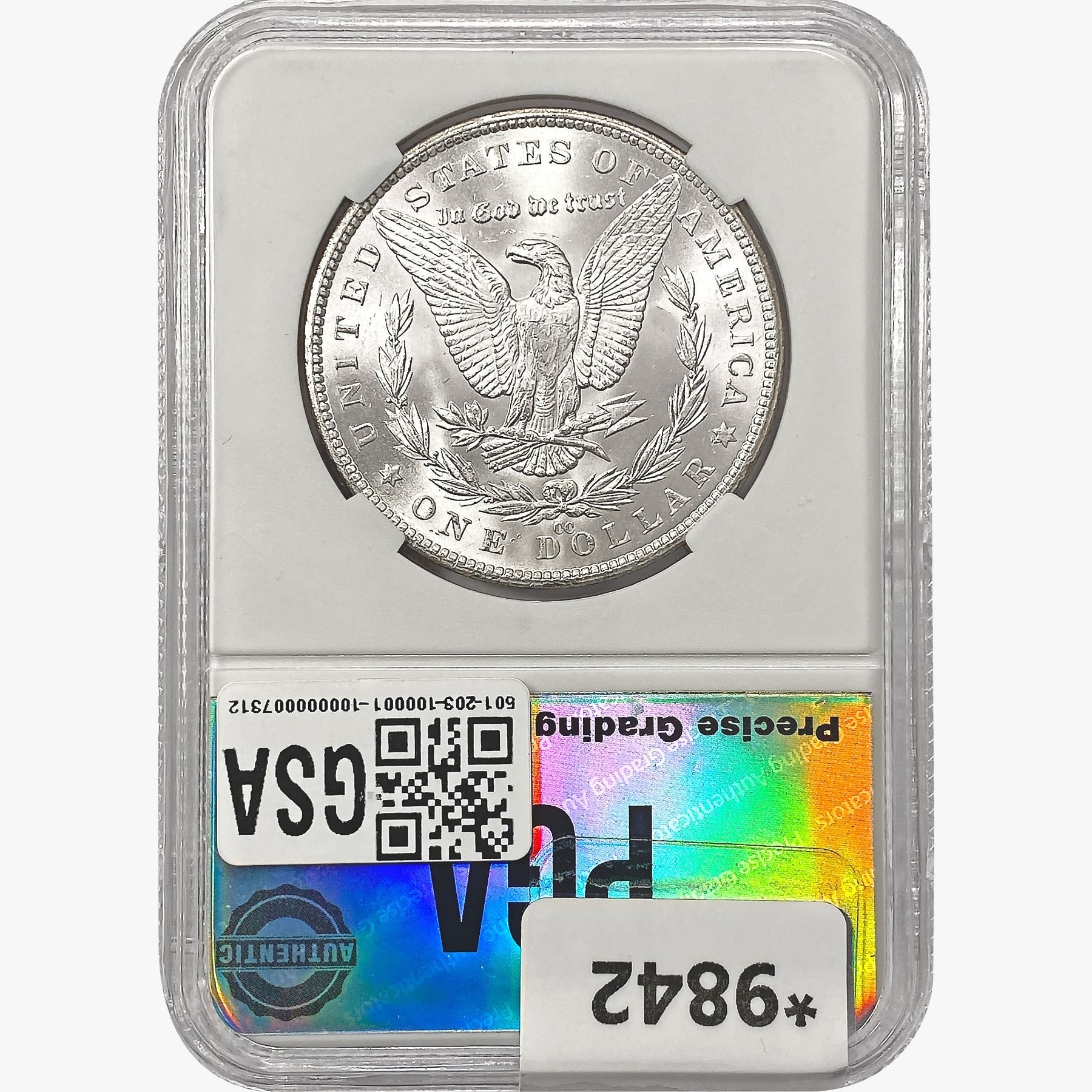 COINS AND CURRENCY LISTED IN GSA’S CATALOG AS GRADED AND ENCAPSULATED BY PCGS, NGC, ANACS, ICG, PCGS CURRENCY, PMG, PCGS BANKNOTE GRADING, CMC OR ANY OTHER THIRD-PARTY GRADING SERVICE ARE LIKEWISE SOLD “AS-IS” EXCEPT AS EXPRESSLY SET FORTH HEREIN. ALL THIRD-PARTY GRADING SERVICE GUARANTEES, INCLUDING AUTHENTICITY, ARE THE SOLE RESPONSIBILITY OF THE THIRD-PARTY GRADING SERVICE AND NOT WARRANTIES OR GUARANTEES OF GSA. BIDDERS SHOULD CONTACT THESE THIRD-PARTY GRADING SERVICES DIRECTLY WITH RESPECT TO ANY CLAIMS OR QUESTIONS THEY MAY HAVE CONCERNING THEIR GUARANTEES AND WARRANTIES. BIDDERS ACKNOWLEDGE AND AGREE THAT AUCTIONEER IS NOT BOUND BY OR LIABLE FOR ANY OPINION OR CERTIFICATION BY ANY THIRD-PARTY GRADING SERVICE. REMOVAL OF A PRODUCT FROM ITS PROTECTIVE CASING OR HOLDER OR ALTERATION OF ANY COIN HOLDER WAIVES ALL RIGHTS CONCERNING THE PRODUCT CONTAINED THEREIN.