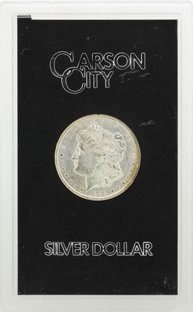 One 1882-CC Morgan Silver Dollar. Coin comes in case as shown in picture.