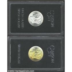 1882-CC S$1 MS61 Uncertified, a few luster grazes on the chin but otherwise well struck and pleasing; and an 1882-CC MS63 Uncertified, the obverse has bright lemon patina, the reverse is well preserved. Both coins come with boxes of issue, one of which has a slightly damaged corner. One of the boxes has a certificate of issue. 2 coins Important notice: We expect to be auctioning lots at the rate of 200-250 per hour. Sometimes eBay Premier live bid software cannot keep up with that pace, so we strongly recommend that you place a realistic proxy bid now as insurance to avoid disappointment. Also please note that all Heritage/CAA lots purchased through eBay Premier carry a 20% Buyer's Premium. Please make sure you read the Terms and Conditions.