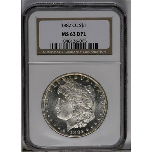 1882-CC S$1 MS63 Deep Prooflike NGC. A fully brilliant 1882-CC
