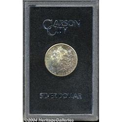 <B>1882-CC<S$1> MS63 Uncertified.</B></I> Magenta and cobalt-blue toning on the obverse. Accompanied by the GSA box of issue.<BR><I>From the Newark Mounds Collection.</B></I> <BR><BR><B>Important notice:</B> Heritage usually auctions material at the rate of 200-250 lots per hour. On some occasions eBay Live bid software or the Internet may not be able to keep up with the pace of the auction. We recommend placing a realistic absentee bid now as insurance to avoid disappointment. Occasionally the auctioneer may eliminate or reject an eBay Live bid, and the auctioneer may also reopen a lot after the close of the eBay live bidding (usually because we missed an audience bid), and may reject your bid even if it shows you as the winning bidder. By bidding via eBay Live, you agree that Heritage may award the lot to another bidder at its sole discretion under the circumstances described above or any other reasonable circumstances. Since eBay bids are not shown to us until we open the lot on the floor, we treat those bids just like floor bids. In most cases the floor responds before the eBay bid is presented to us, due to Internet lag time, so for consistency we have made it a policy that floor bids are always considered first over tie eBay live bids. Also please note that all Heritage lots purchased through eBay Live carry a 20% Buyer's Premium. Please make sure you read the Terms and Conditions before you bid.