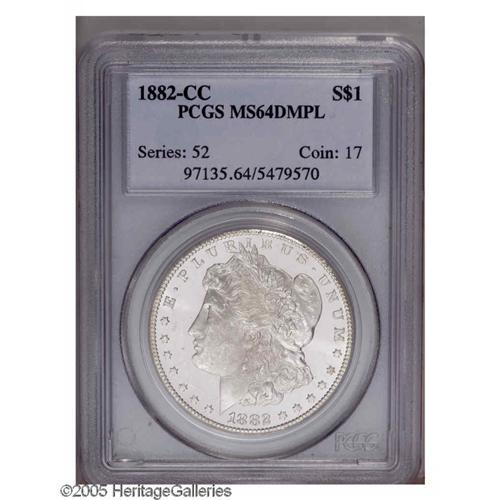 1882-CC S$1 MS64 Deep Mirror Prooflike PCGS. Well stru 1882-CC[S$1] MS64 Deep Mirror Prooflike PCGS.