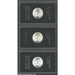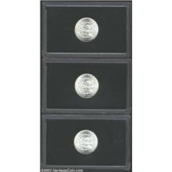 1882-CC S$1 MS64 Uncertified, sharply struck and lustrous, struck from clashed dies; 1883-CC MS64 Uncertified, faint roller marks (as made) on the ear, the obverse border has golden-brown patina; and an 1883-CC MS64 Uncertified, well struck and with immaculate fields, the reverse has a pair of charcoal toning spots. All three coins are with their boxes of issue, two of which have certificates of issue. 3 coins Important notice: We expect to be auctioning lots at the rate of 200-250 per hour. Sometimes eBay Premier live bid software cannot keep up with that pace, so we strongly recommend that you place a realistic proxy bid now as insurance to avoid disappointment. Also please note that all Heritage/CAA lots purchased through eBay Premier carry a 20% Buyer's Premium. Please make sure you read the Terms and Conditions.