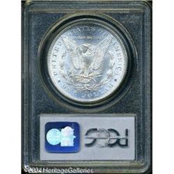 1882-CC S$1 MS65 PCGS. Aside from weakness in the <B>1882-CC S$1 MS65 PCGS.</B></I> Aside from weakness in the hair over Liberty's ear, the design elements are well defined on this lustrous, virtually white Carson City Morgan dollar. A few luster grazes on Liberty's cheek and neck do not distract. <BR><BR><B>Important notice:</B> Heritage usually auctions material at the rate of 200-250 lots per hour. On some occasions eBay Live bid software or the Internet may not be able to keep up with the pace of the auction. We recommend placing a realistic absentee bid now as insurance to avoid disappointment. Occasionally the auctioneer may eliminate or reject an eBay Live bid, and the auctioneer may also reopen a lot after the close of the eBay live bidding (usually because we missed an audience bid), and may reject your bid even if it shows you as the winning bidder. By bidding via eBay Live, you agree that Heritage may award the lot to another bidder at its sole discretion under the circumstances described above or any other reasonable circumstances. Since eBay bids are not shown to us until we open the lot on the floor, we treat those bids just like floor bids. In most cases the floor responds before the eBay bid is presented to us, due to Internet lag time, so for consistency we have made it a policy that floor bids are always considered first over tie eBay live bids. Also please note that all Heritage lots purchased through eBay Live carry a 20% Buyer's Premium. Please make sure you read the Terms and Conditions before you bid. This lot is being auctioned in conjunction with a live floor auction by Heritage Galleries & Auctioneers. All final auction and invoice information will be supplied by Heritage Galleries & Auctioneers, and all other information should be considered preliminary. Lot:7407
