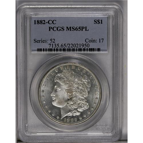 1882-CC S$1 MS65 Prooflike PCGS. Richly prooflike fiel 1882-CC