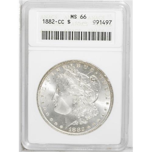 <B>1882-CC<img border='0' src='http://www.heritagecoins.com/images/star.gif' width=10 height=10>$1> MS66 ANACS.</B></I> An attractive piece, highly lustrous with discernible frost on the highpoints. Largely untoned, though hints of golden-red appear at the periphery, and solidly struck.<BR><I>From The Clifton Rodenburg Collection.</B></I>