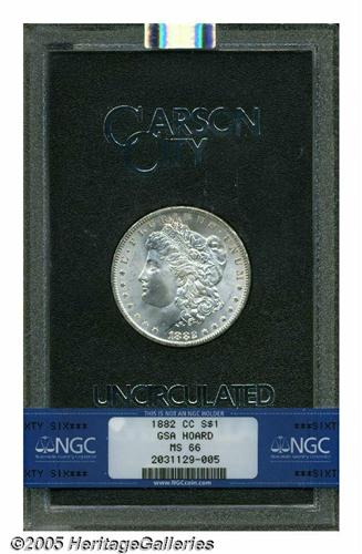 <B>1882-CC<S$1> MS66 NGC.</B></I> A boldly struck and splendidly undisturbed example, untoned save for the occasional wisp of honey color. Although not a rare Carson City date, a premium Gem of such exemplary quality is always in demand.