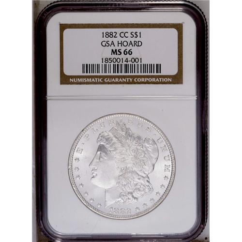 <B>1882-CC<img border='0' src='http://www.heritagecoins.com/images/star.gif' width=10 height=10>$1> MS66 NGC.</B></I> Ex: GSA Hoard. This magnificent Carson City Premium Gem has a mere trace of gold toning, and the lustrous fields are nearly immaculate. Only trivial grazes on the cheek limit the grade. <BR><BR><B>Important notice:</B> Heritage usually auctions material at the rate of 200-250 lots per hour. On some occasions eBay Live bid software or the Internet may not be able to keep up with the pace of the auction. We recommend placing a realistic absentee bid now as insurance to avoid disappointment. Occasionally the auctioneer may eliminate or reject an eBay Live bid, and the auctioneer may also reopen a lot after the close of the eBay live bidding (usually because we missed an audience bid), and may reject your bid even if it shows you as the winning bidder. By bidding via eBay Live, you agree that Heritage may award the lot to another bidder at its sole discretion under the circumstances described above or any other reasonable circumstances. Since eBay bids are not shown to us until we open the lot on the floor, we treat those bids just like floor bids. In most cases the floor responds before the eBay bid is presented to us, due to Internet lag time, so for consistency we have made it a policy that floor bids are always considered first over tie eBay live bids. Also please note that all Heritage lots purchased through eBay Live carry a 20% Buyer's Premium. Please make sure you read the Terms and Conditions before you bid. This lot is being auctioned in conjunction with a live floor auction by Heritage Galleries & Auctioneers. All final auction and invoice information will be supplied by Heritage Galleries & Auctioneers, and all other information should be considered preliminary. Lot:3338 <BR><BR><B>Winning Notification and Billing:</B> After the FINAL session in this auction is complete, Heritage will send e-mail and snail mail invoices. This process normally takes several days. All final auction and invoice information will be supplied by Heritage Galleries & Auctioneers, and all other information should be considered preliminary. <BR><BR>This auction will be conducted on a live auction floor and over the Internet through eBay Live. If you choose to place an absentee bid, please take a moment to <font color='#0000ff'><u><a href='http://pages.ebay.com/liveauctions/help/before/laabsentee.html'>learn how eBay Live absentee bidding works</a></u></font><font color='#000000'>