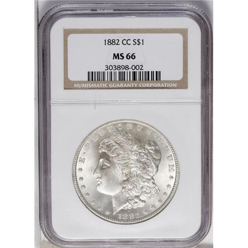 1882-CC S$1 MS66 NGC. Sharply struck with soft, froste