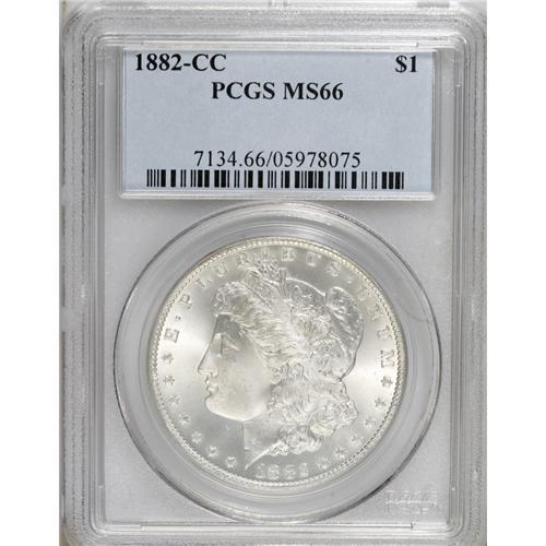 1882-CC S$1 MS66 PCGS. A nearly brilliant Carson City