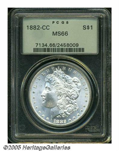 <B>1882-CC<S$1> MS66 PCGS.</B></I> An intricately struck and thoroughly lustrous premium Gem, clean-cheeked and not far from brilliant. An available Carson City issue, courtesy of the GSA hoard. Certified in a prior generation holder.