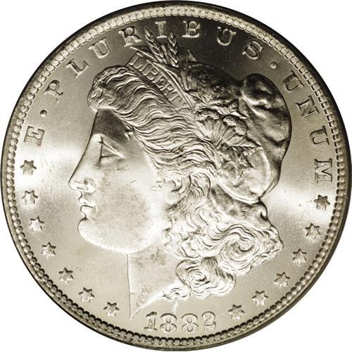 1882-CC S$1 MS66 PCGS. Snow-white and frosty, with an
