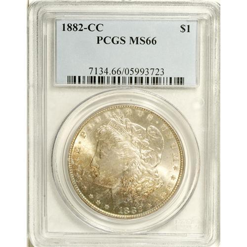1882-CC S$1 MS66 PCGS. The reverse is brilliant, while
