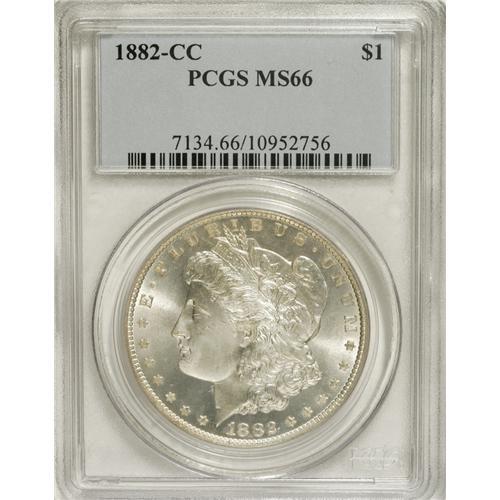 <B>1882-CC S$1 MS66 PCGS.</B></I> This exquisitely preserved Premium Gem has dazzling luster and a sharp strike. Each side has varying patterns of light gold toning. Carson City silver dollars are enormously popular, especially in such quality.<BR><BR><b>Shipping:</b> Coins & Currency (<a target="_blank" href="http://www.heritageauctions.com/common/shipping.php">view shipping information</a>)
