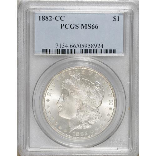 <B>1882-CC S$1 MS66 PCGS.</B></I> VAM-2A. Gentle apricot toning visits the centers of this razor-sharp Premium Gem. Liberty's lip is doubled on this boldly clashed VAM. Beautifully preserved and exceptionally attractive. Struck from moderately rotated dies.<BR><BR><b>Shipping:</b> Coins & Currency (<a target="_blank" href="http://www.heritageauctions.com/common/shipping.php">view shipping information</a>)