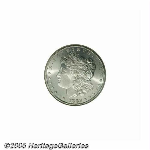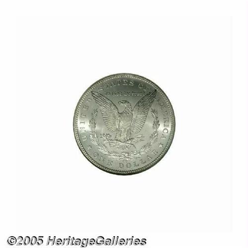 <B>1882-CC<S$1> MS67 NGC.</B></I> Beginning in the 1930s, the Cash Room in the Treasury Building paid out 1882-CC Morgan dollars at face value to dealers and collectors. The general public also took advantage of this situation, particularly in the 1960s. When the Treasury Raid ended in 1964, the federal government still had 605,029 undistributed '82-CC dollars, or more than half of the original mintage of 1.1 million pieces. These coins were later sold by the General Services Administration. Despite its availability in lower Mint State grades, this issue is a significant rarity at the Superb Gem level of preservation. This is an uncommonly smooth example with bright, frosty-white surfaces. The strike is a little soft over the central highpoints, but the eye appeal is not diminished in the slightest. Population: 23 in 67, with none finer (5/05).