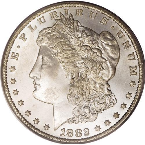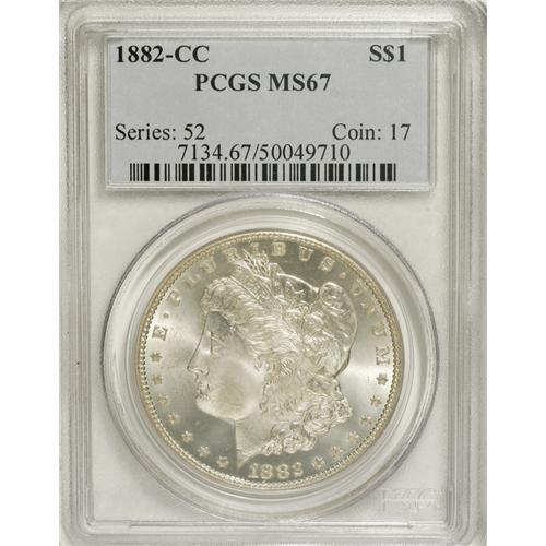 1882-CC S$1 MS67 PCGS. The 1882-CC Morgan, and the two