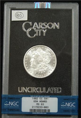 1882-CC U.S. MORGAN SILVER DOLLAR. In case. Unc. Graded by NGC. MS63.