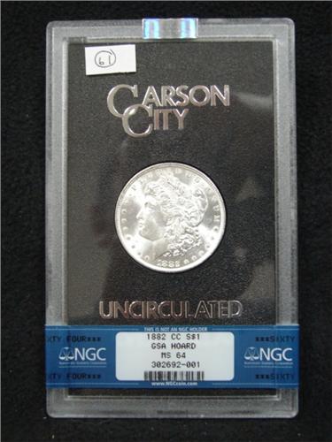 1882-CC U.S. MORGAN SILVER DOLLAR. Graded by NGC. GSA Hoard. MS 64.