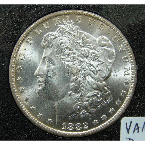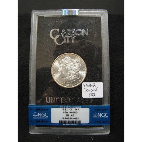1882-CC U.S. MORGAN SILVER DOLLAR. GSA Hoard. MS 63. Graded by NGC. VAM-2. Doubled 882. In case with box.