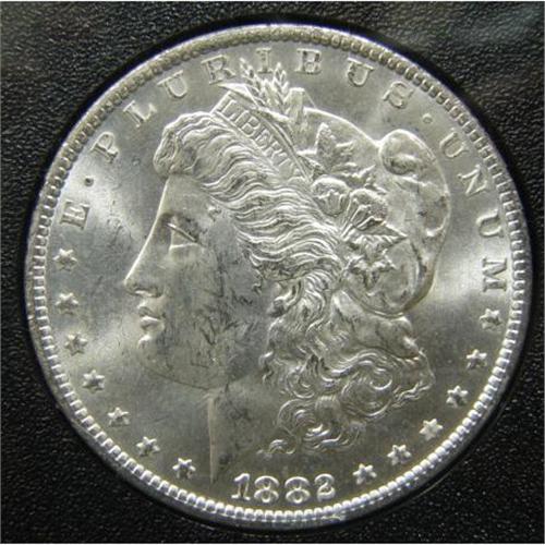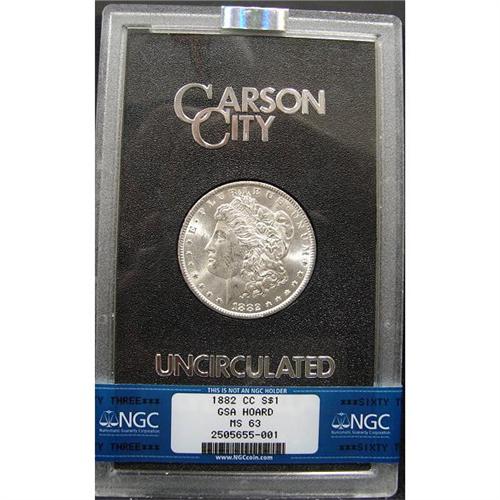 1882-CC U.S. MORGAN SILVER DOLLAR. GSA Hoard. Graded by NGC. MS 63. In case with box.