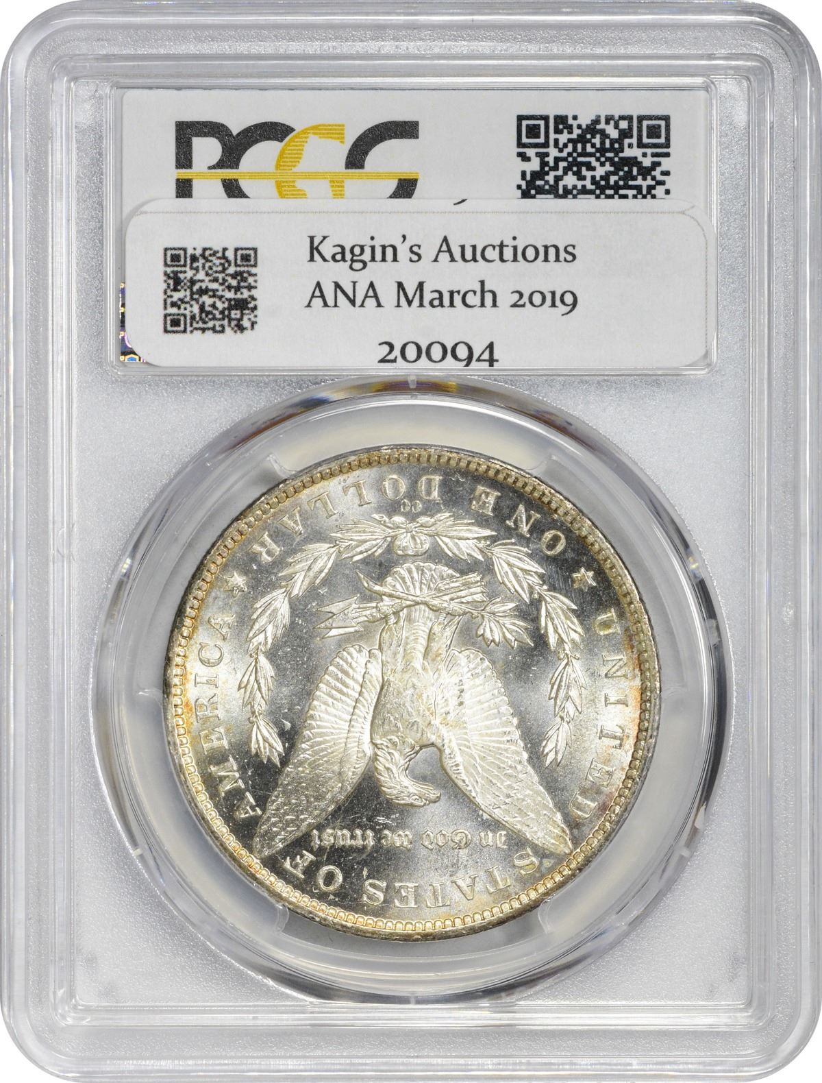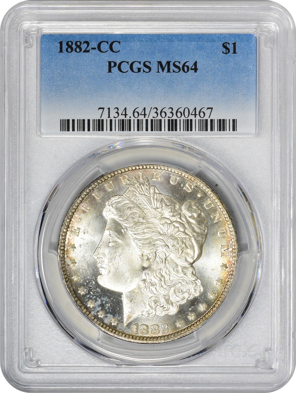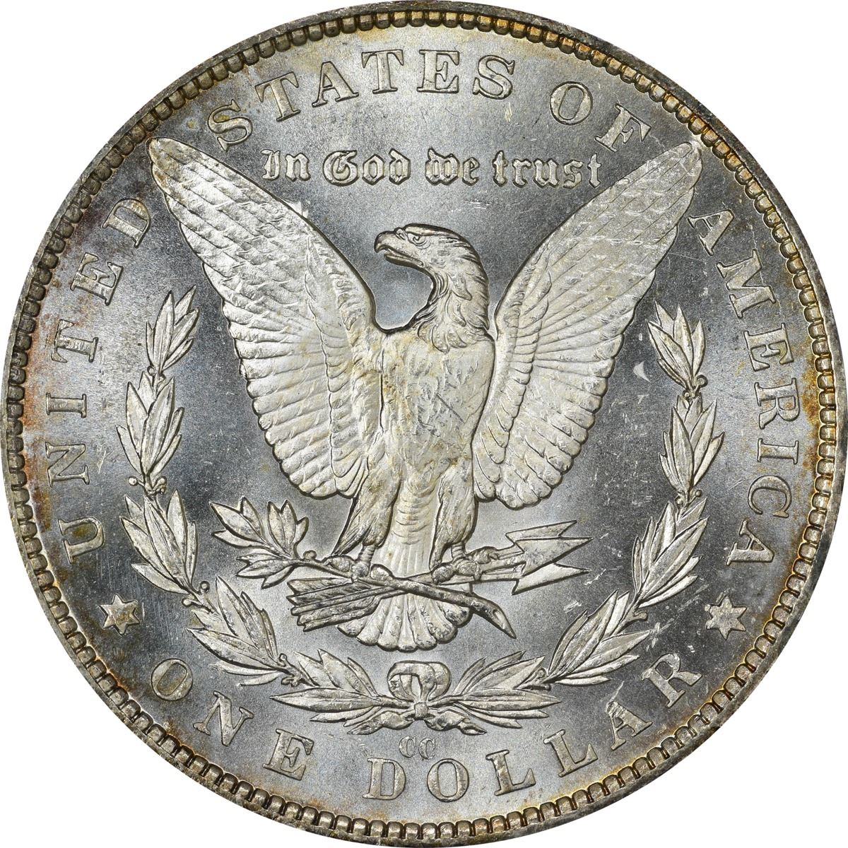 This sparkling near-gem Morgan dollar is largely brilliant with a nuance of pale gold at the rims. The strike is sharp, the cartwheels are active, and the eye appeal is impressive on this popular Carson City issue. Choice for the grade at every turn. PCGS #7134