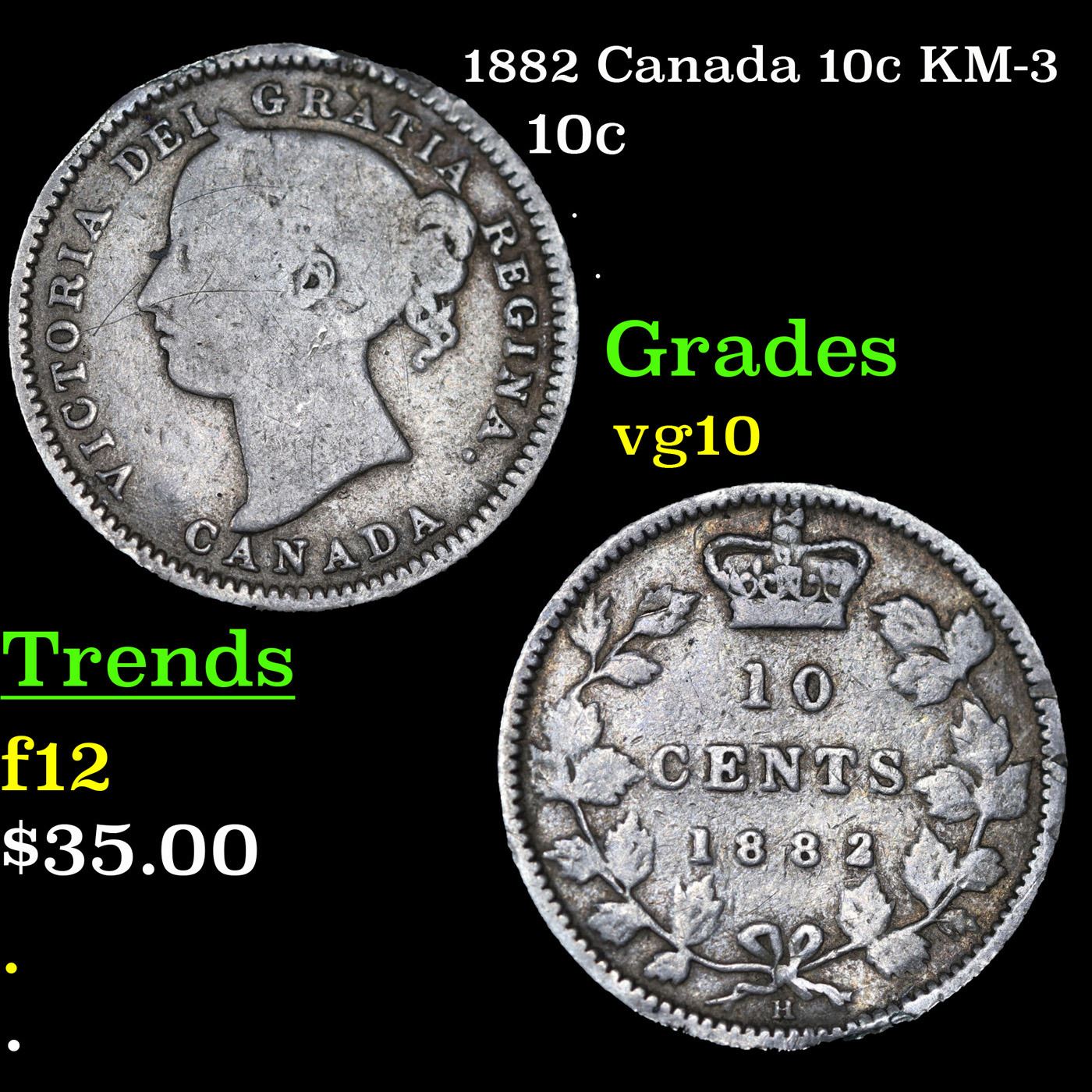 1882 Canada 10c KM-3 Grades vg+.