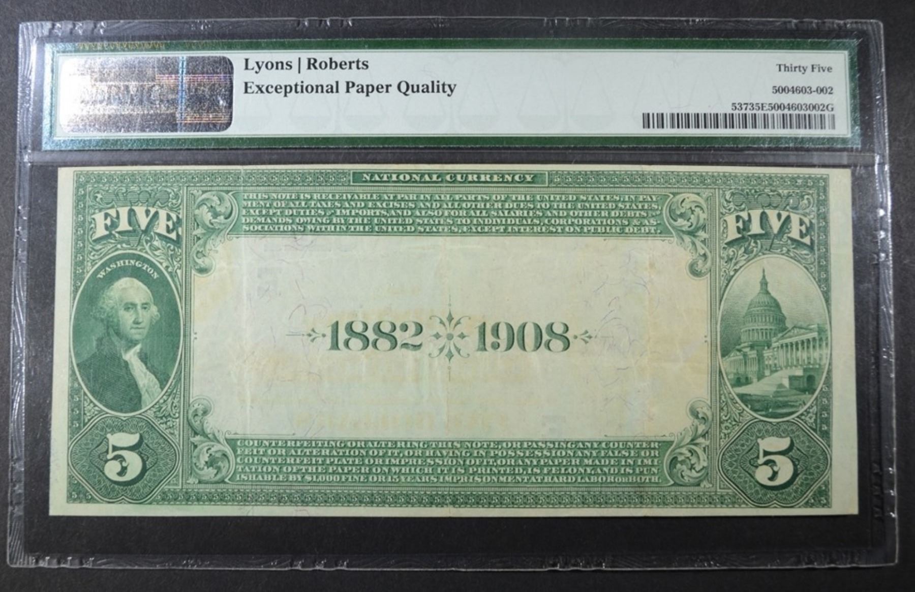 PMG 35EPQ MYERSTOWN NB PENNSYLVANIA RARE ONLY 2 KNOWN THIS NOTE IS THE HIGHEST GRADED THE OTHER IS ONLY VG10 A RARE SHORT LIVED BANK 1882 WAS THE LAST ISSUE ESTIMATE $1900 - $2100.