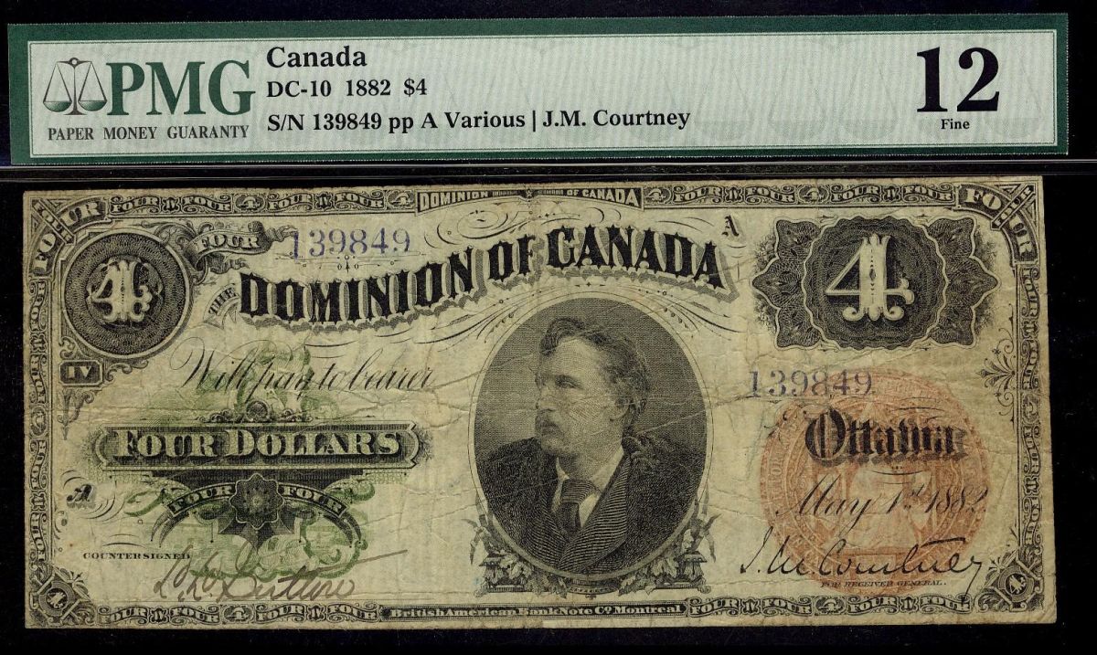 1882 DC-10 $4 139849 PMG F12 Rare note! Minor tear