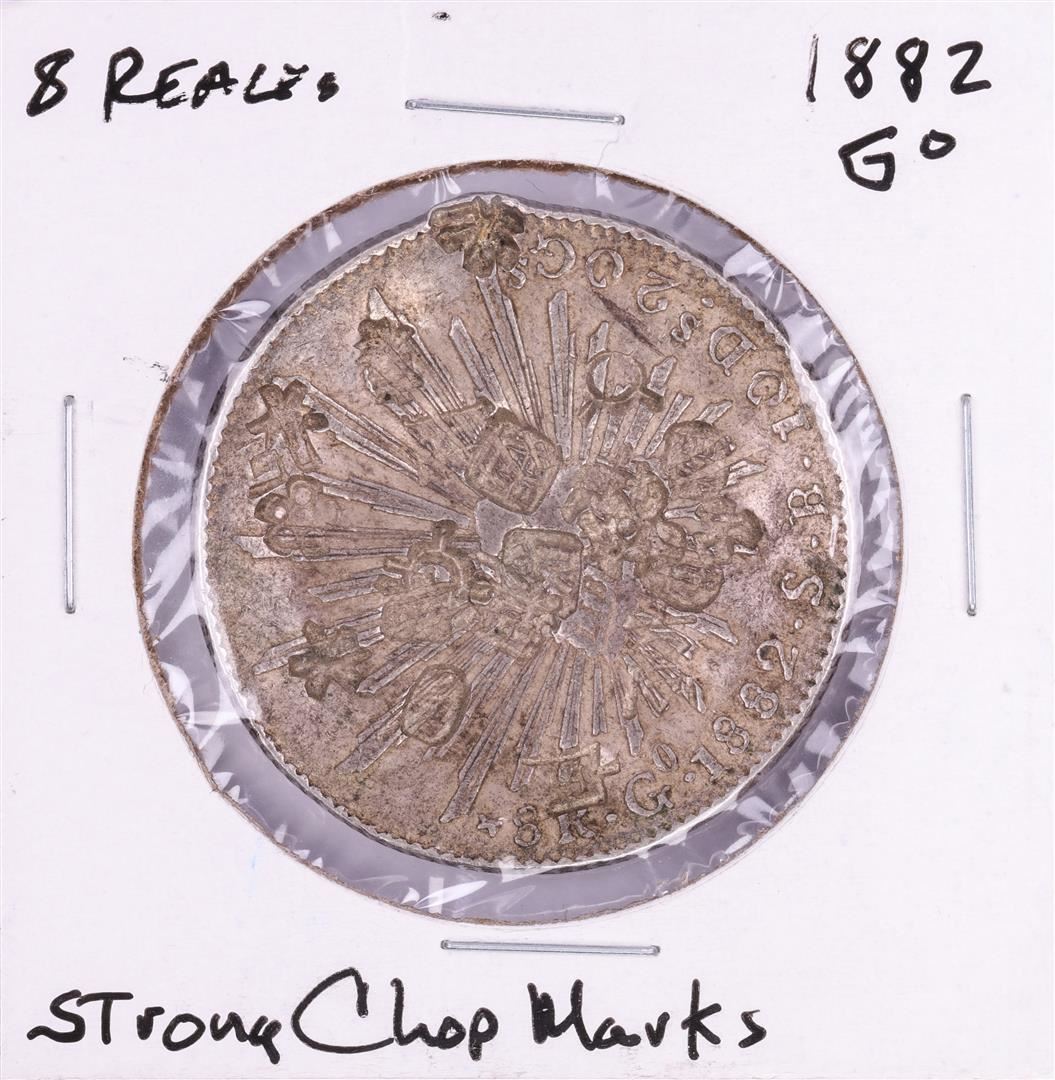 One 1882-Go 8 Reales Mexican Silver Coin Strong Chop Marks.