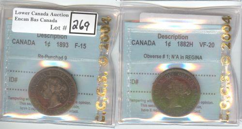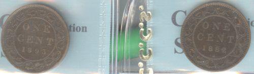 1882 H CCCS certified VF-20, Obverse #1 N'A in Regina; 1893 CCCS certified F-15, Re-Punched 9