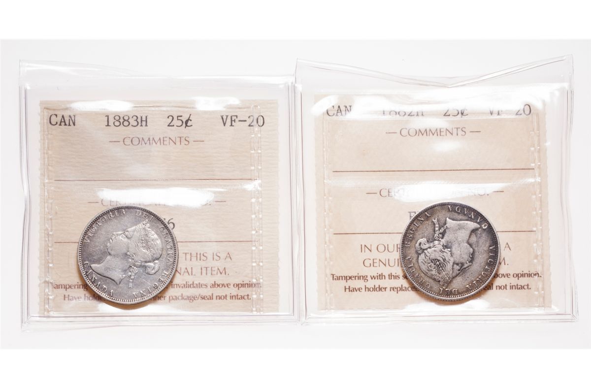1882-H. ICCS Very Fine-20. Heavy toning; 1883-H. ICCS Very Fine-20. Medium heavy toning. Lot of two (2) coins.