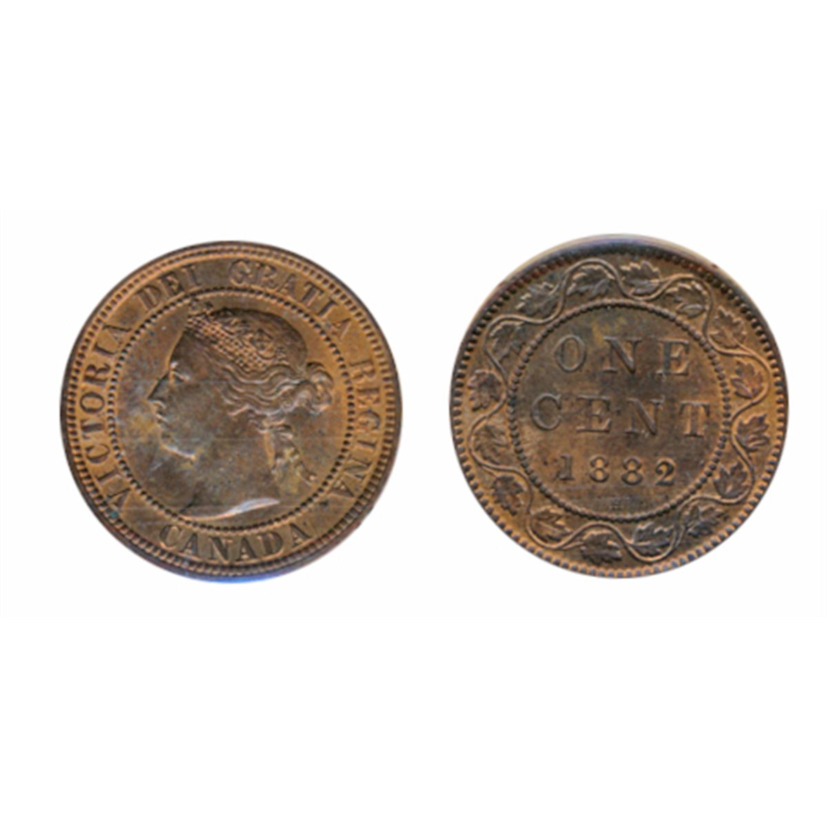 1882-H. Obv. port. #2. ICCS Mint State-63. Trace Red. 20% remaining red luster.