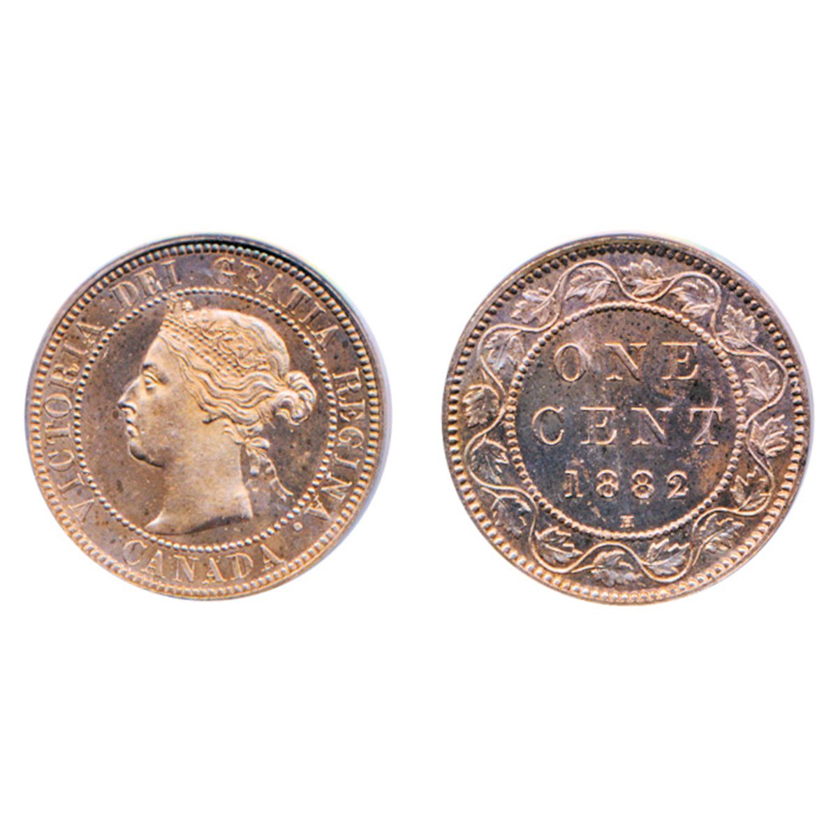 1882-H. SPECIMEN-64. Deep mirror fields, with a ‘Heavy Cameo’ bust. Lightly lacquered. Near Gem with 70% red luster.