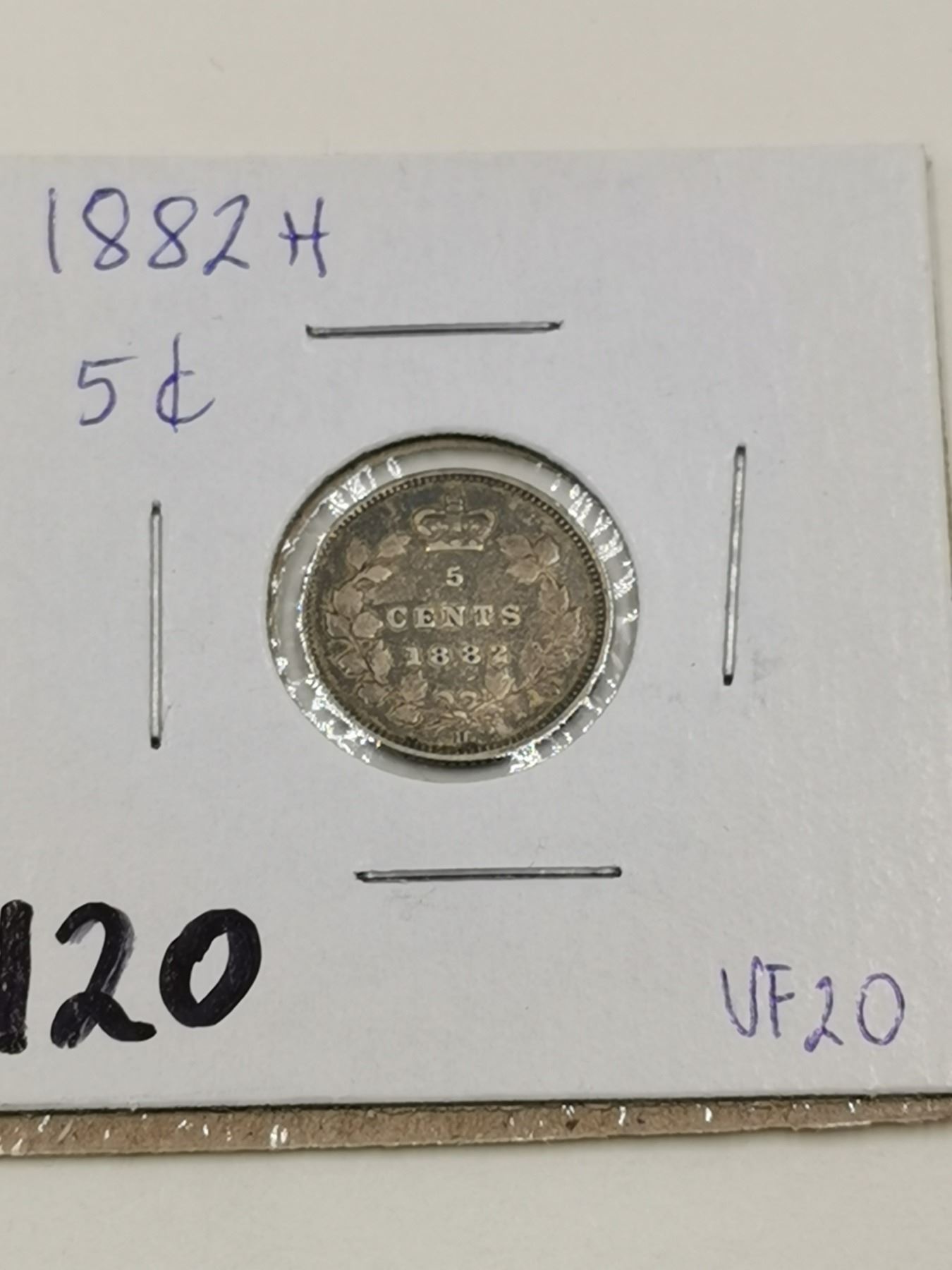 1882 H Silver 5 Cent Coin, VF20
