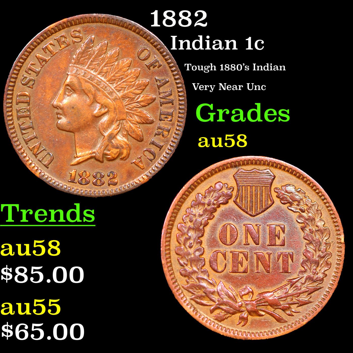 1882 Indian Cent 1c Grades Choice AU/BU Slider.
