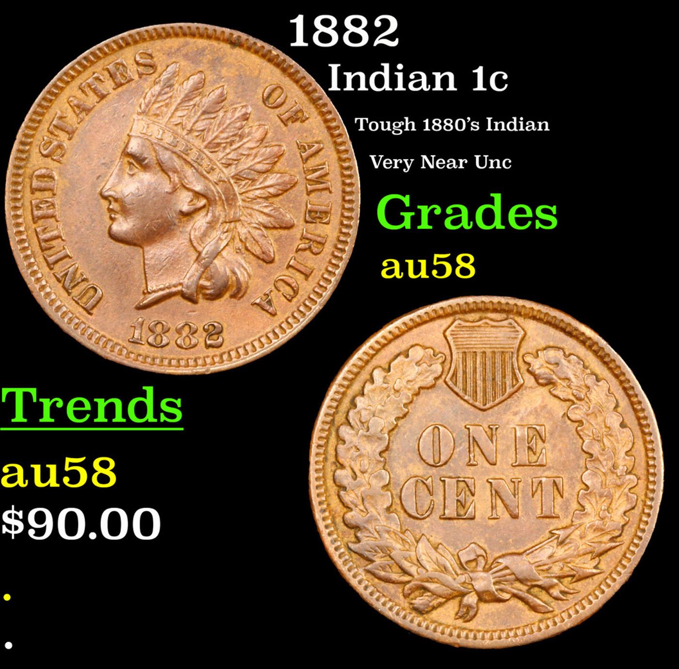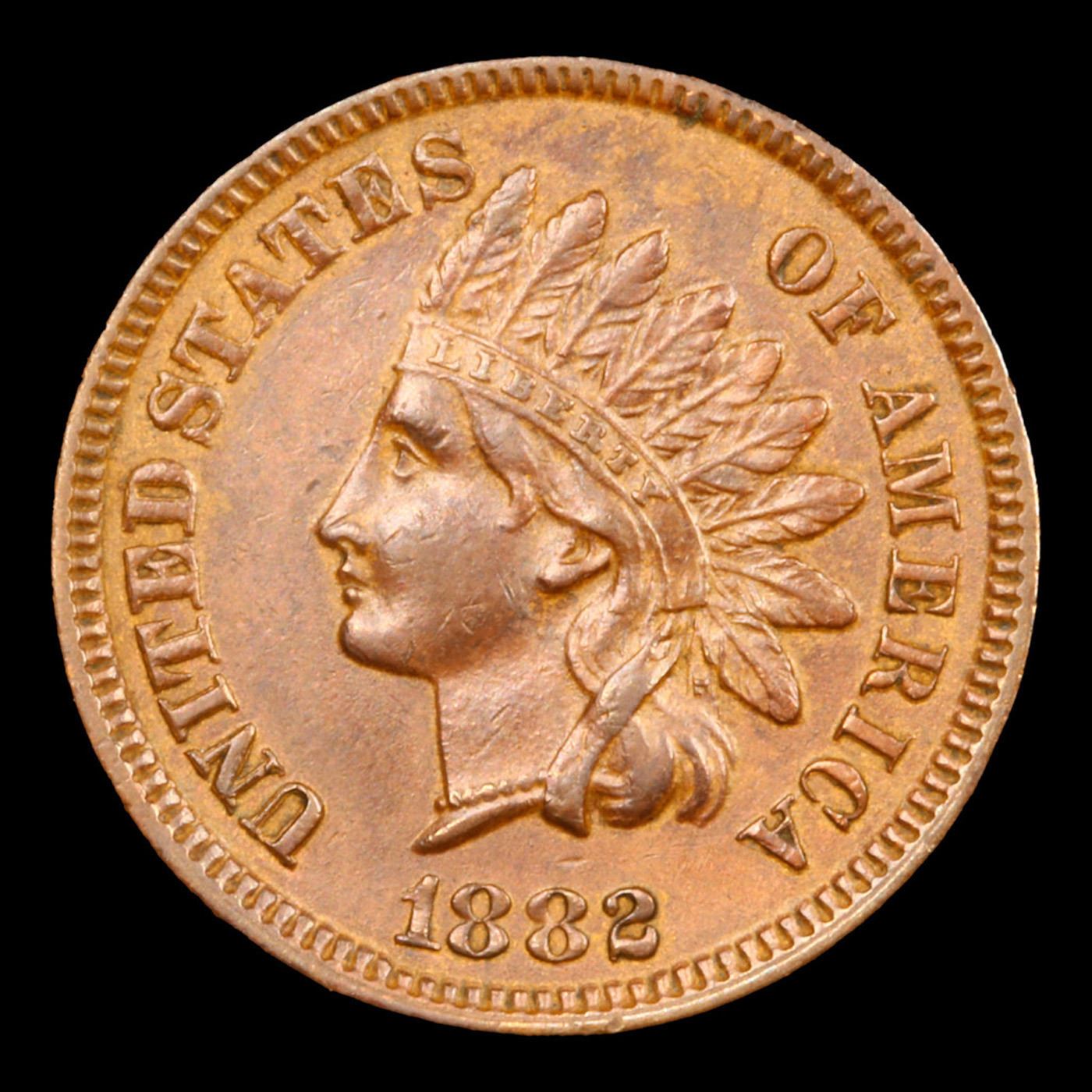 1882 Indian Cent 1c Grades Choice AU/BU Slider.
