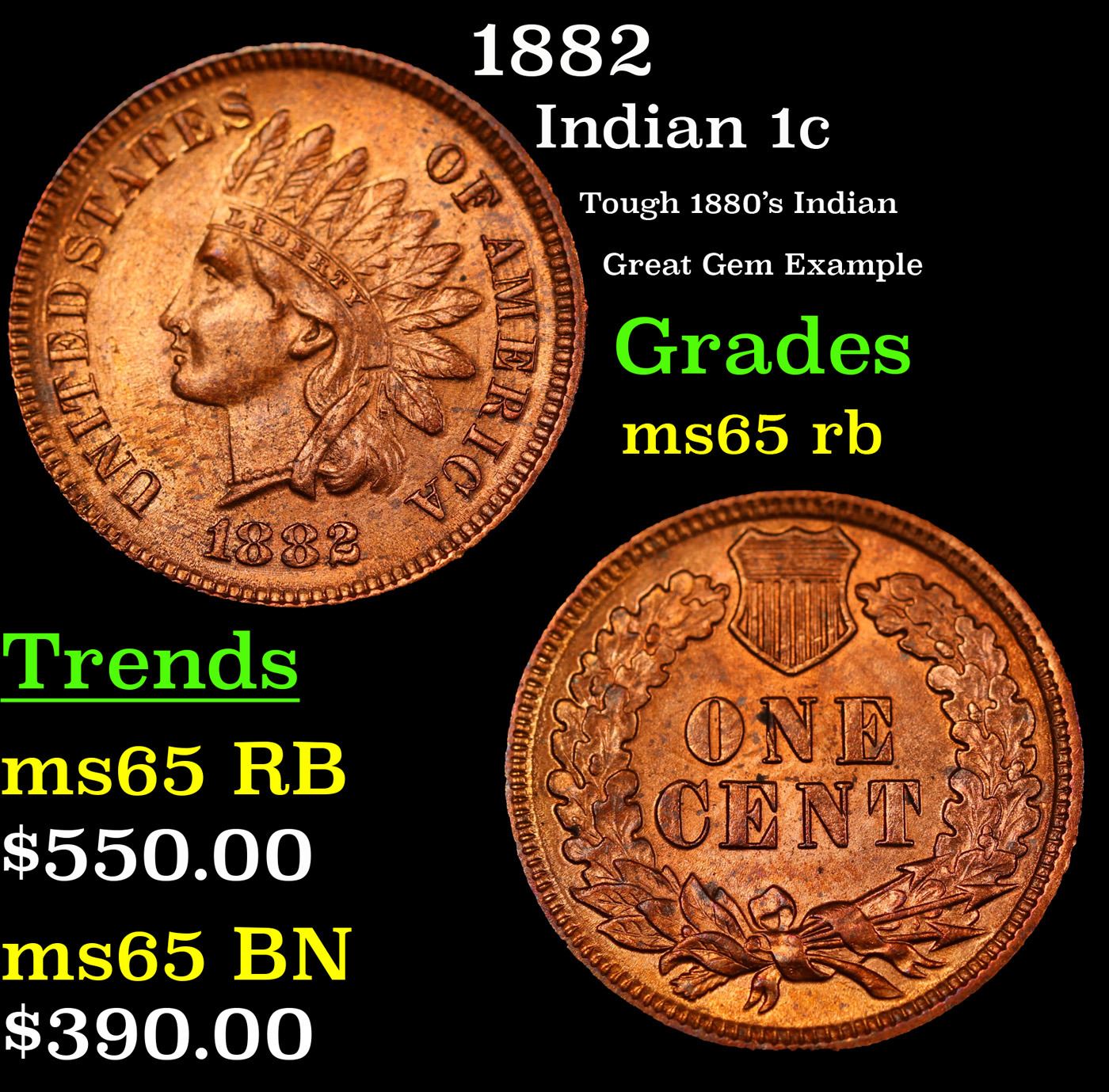 1882 Indian Cent 1c Grades GEM Unc RB.