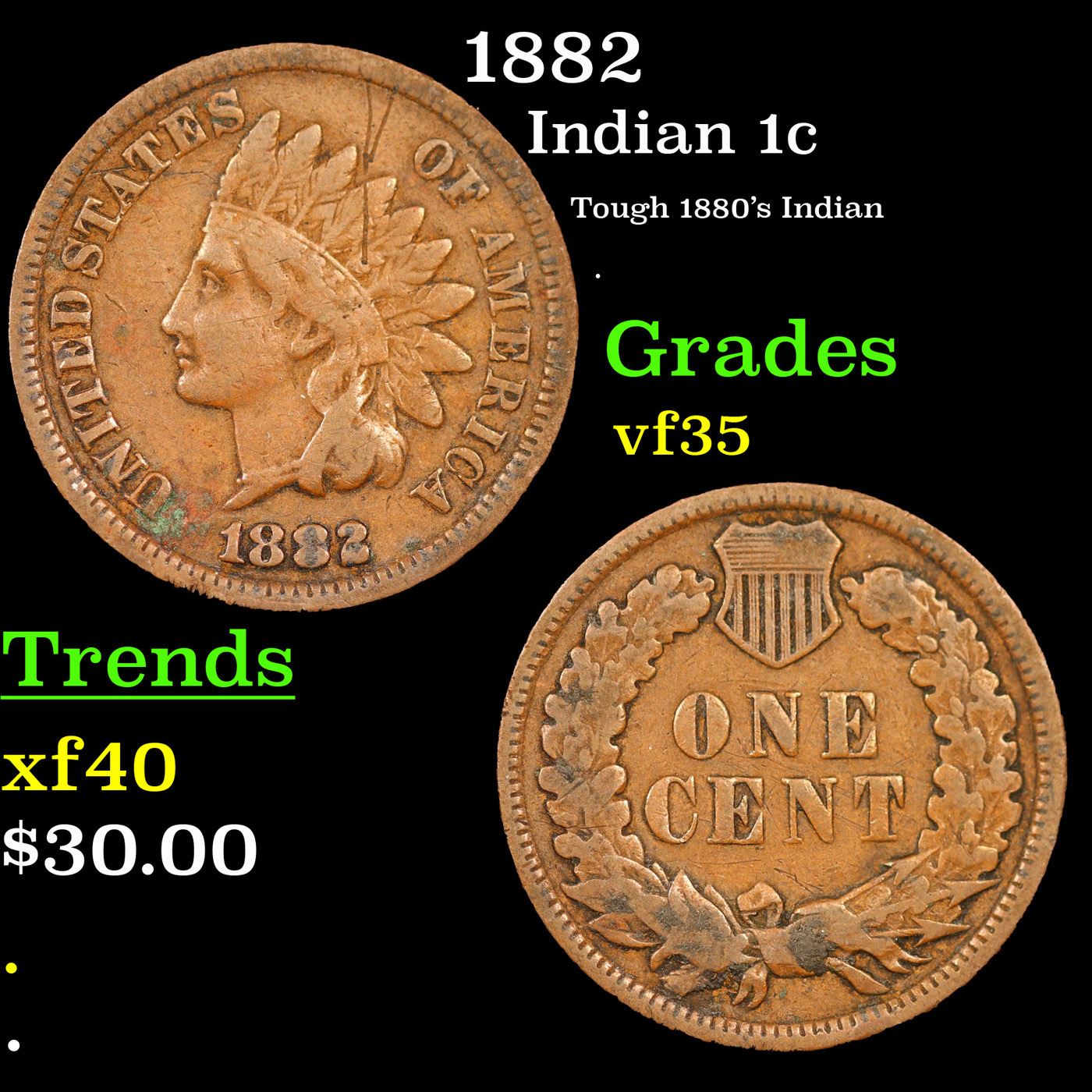 1882 Indian Cent 1c Grades vf++.
