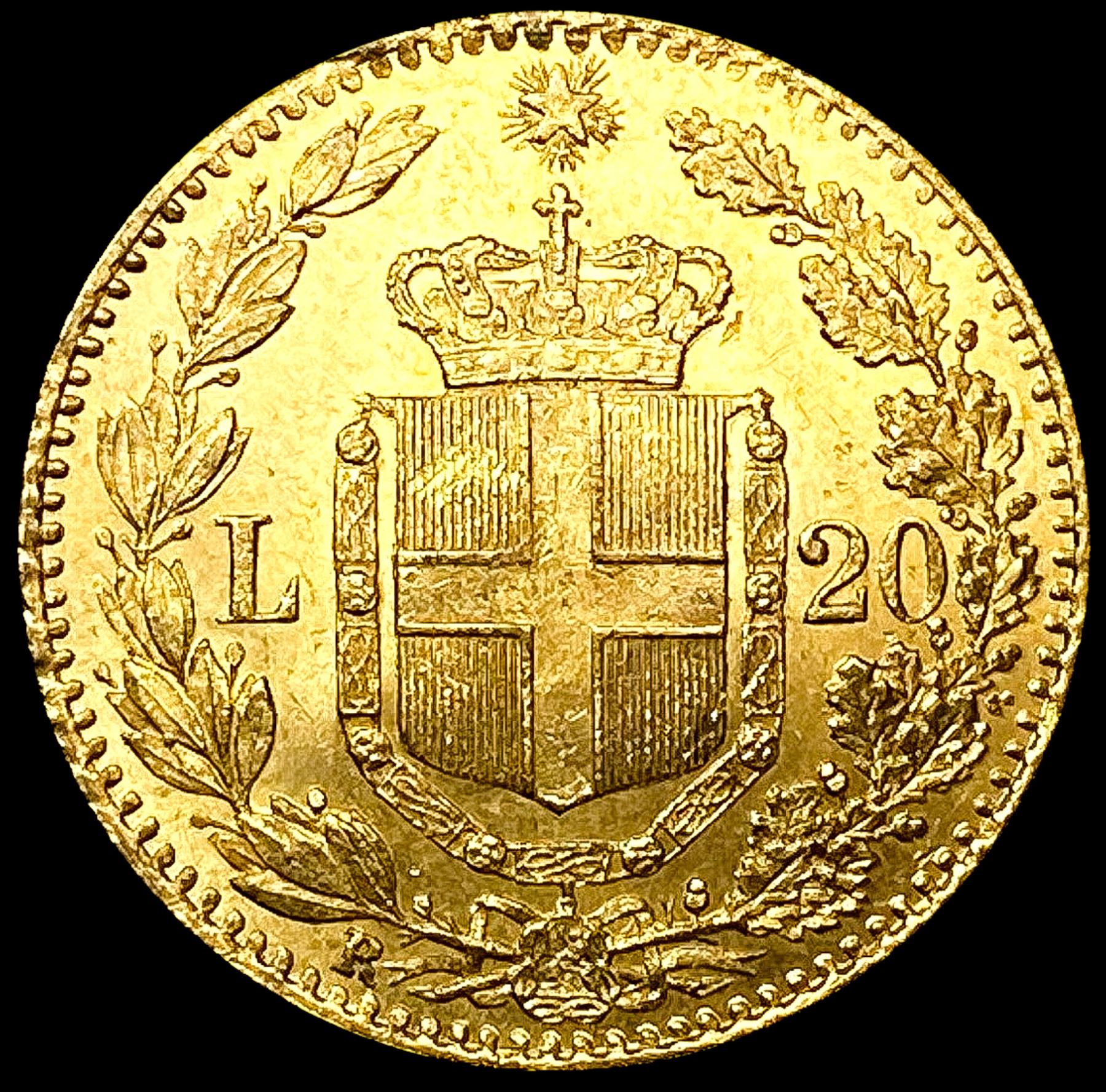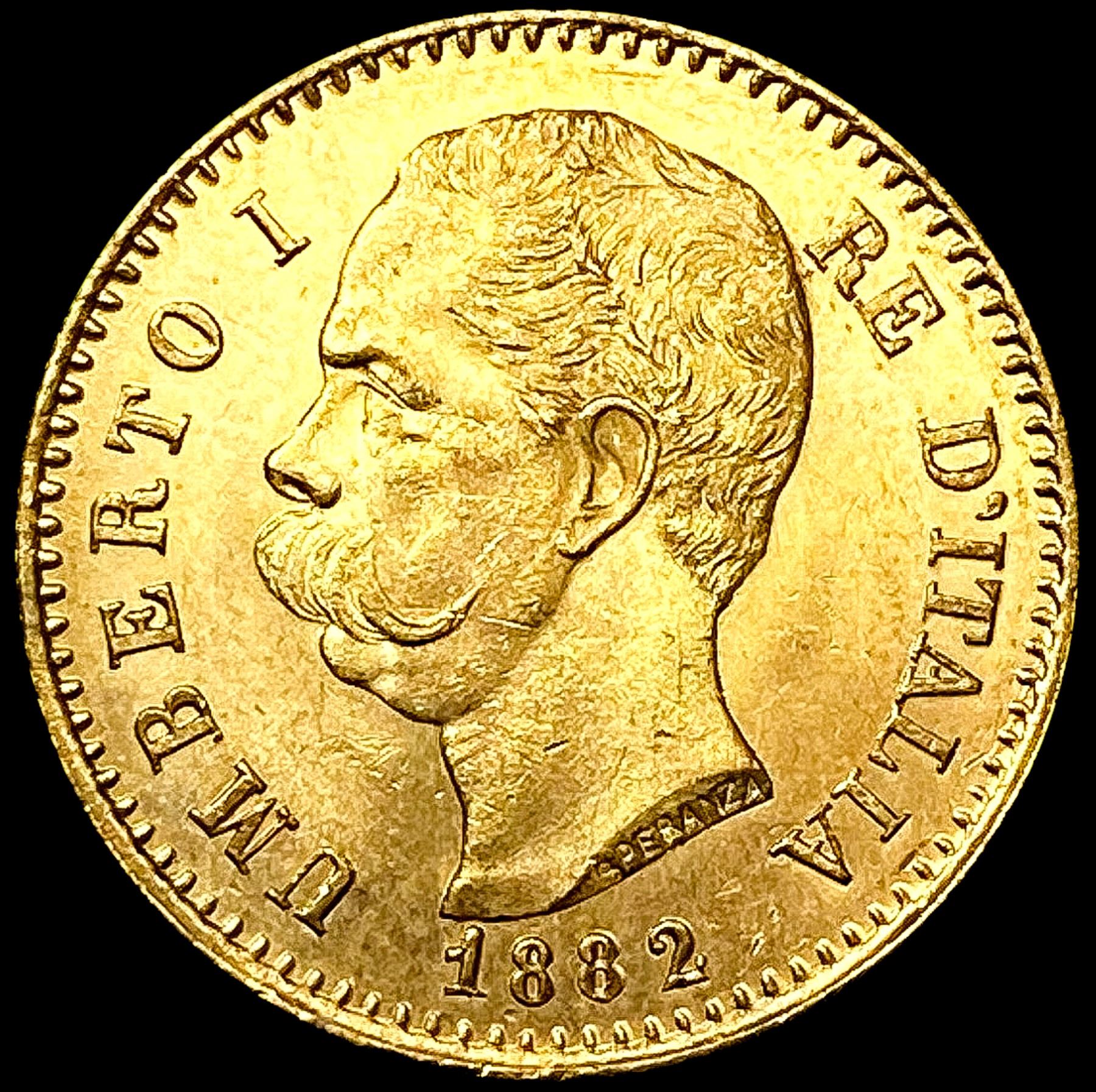 1882 Italy .1867oz Gold 20 Lire UNCIRCULATED