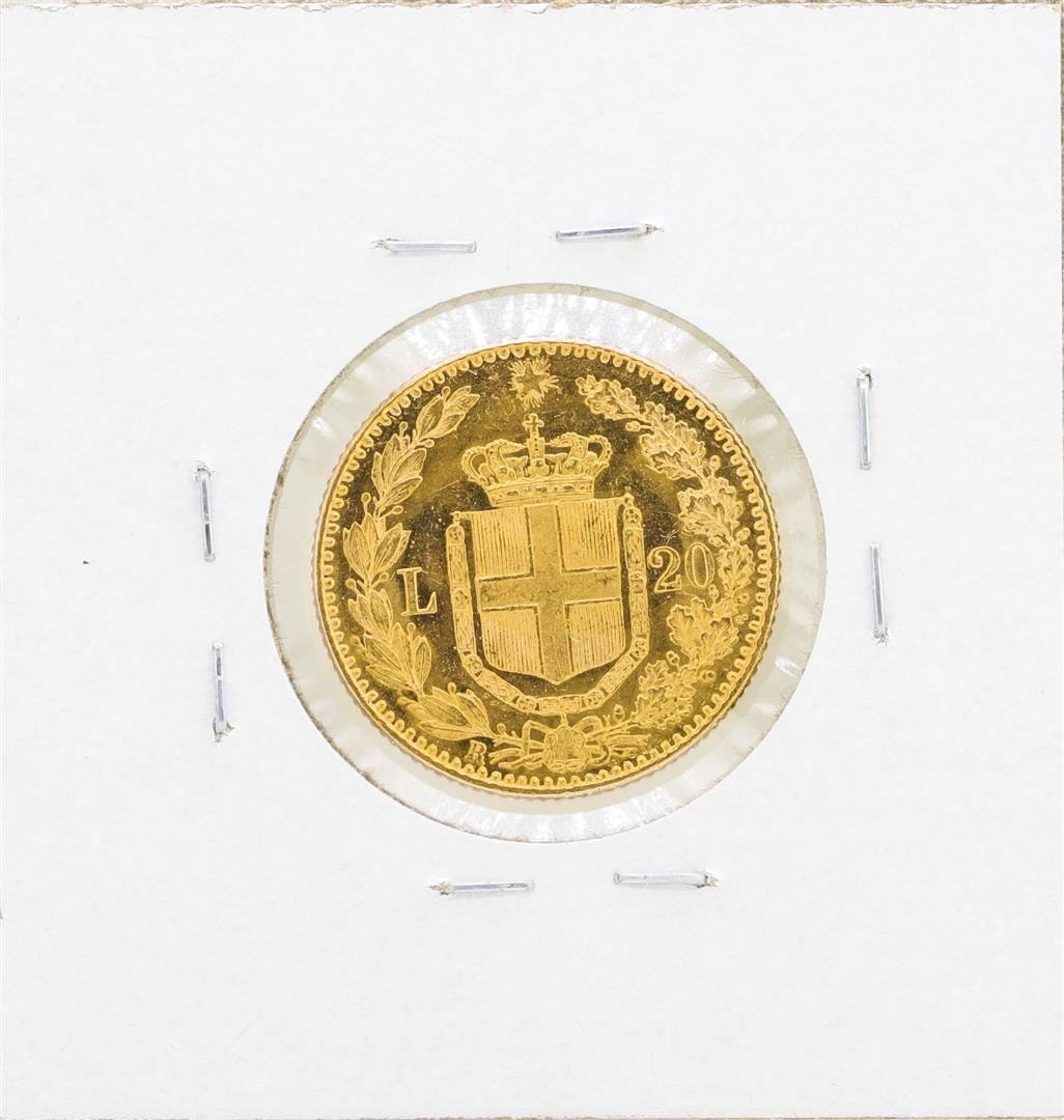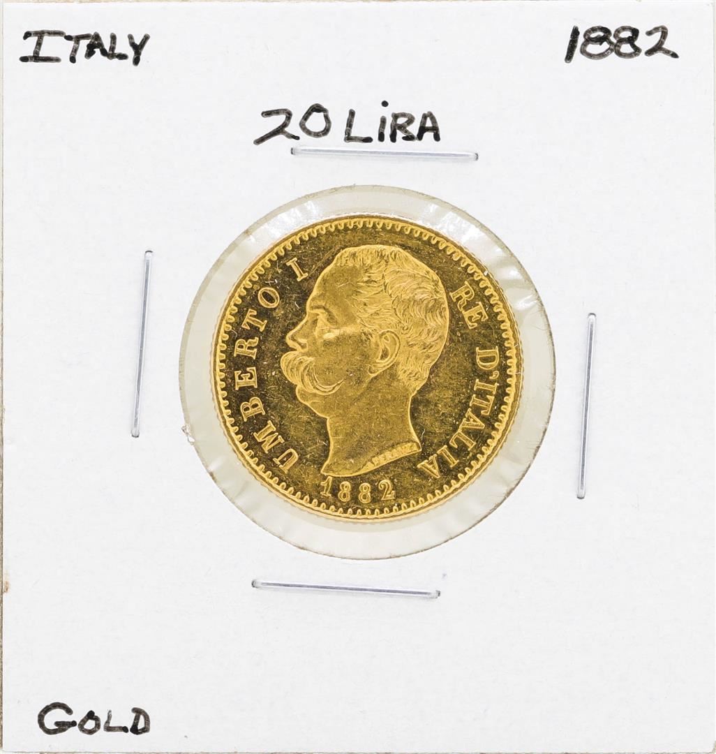 One 1882 Italy 20 Lira Gold Coin.