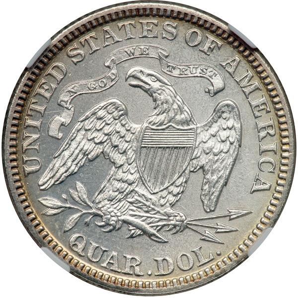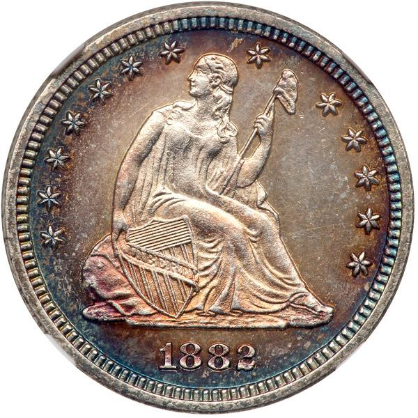 1882. NGC Proof, rev stained. Lovely obverse toning about the borders. Only 1,100 Proofs struck.